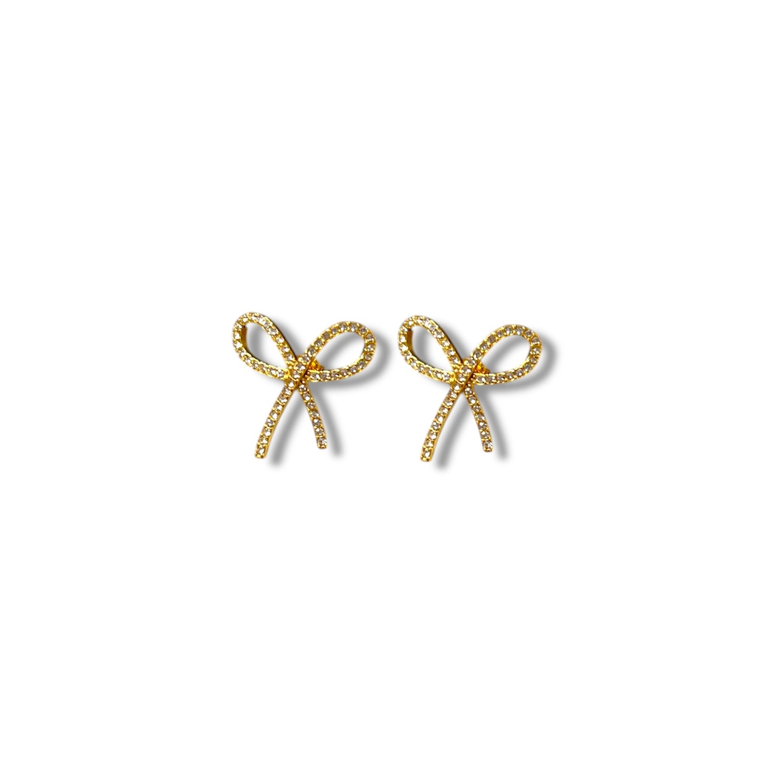 Charming gold bow studs with sparkling zircon stones that add a feminine touch to any outfit. Secure and versatile for everyday wear.