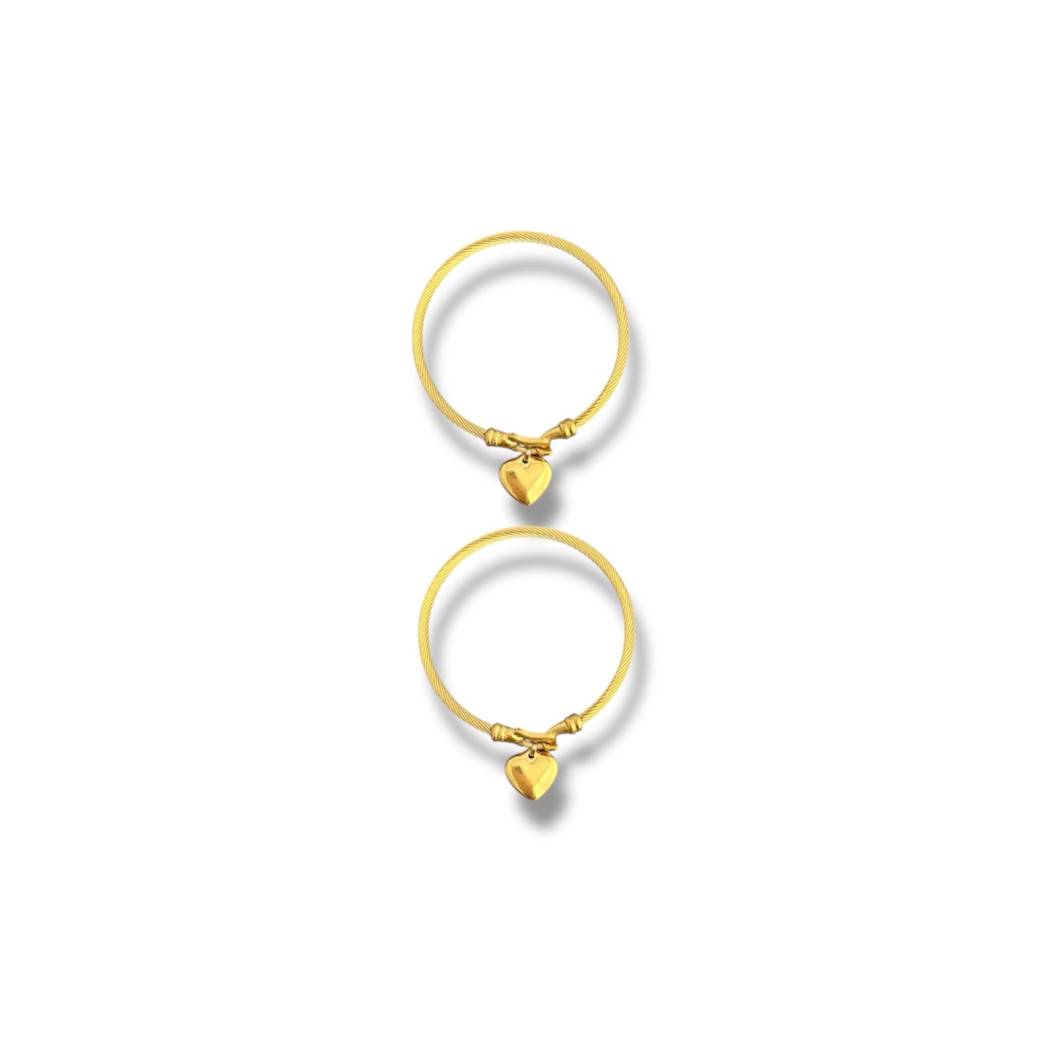 Get two beautiful gold heart bangles in one set. Made from stainless steel that won't tarnish, they stack perfectly together or wear them separately. Mix and match metals for a look that's uniquely yours.