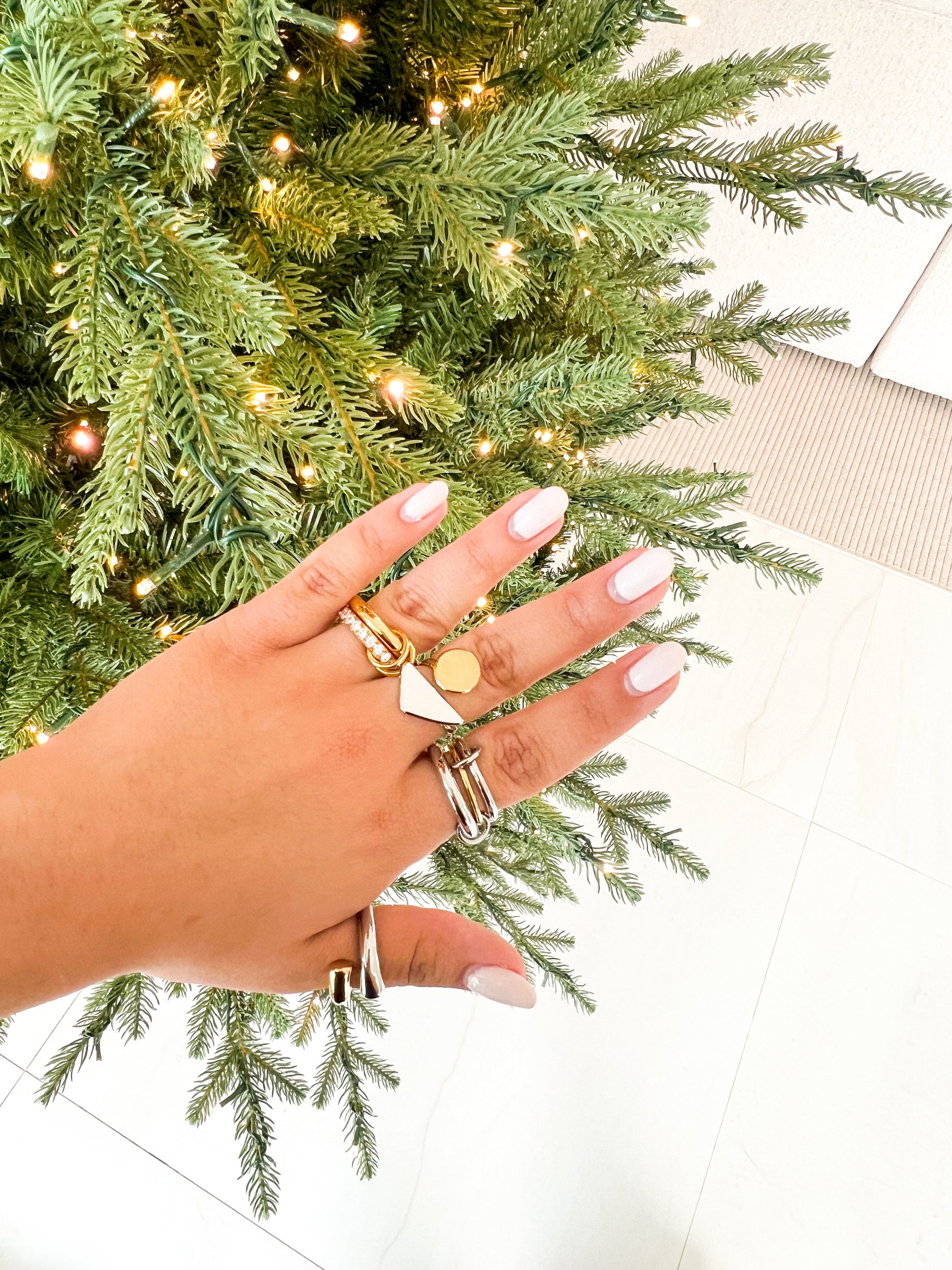 Gold stacked rings with rhinestone details in durable stainless steel. Mix and match these trendy pieces to create your perfect look, whether for special occasions or everyday sparkle.